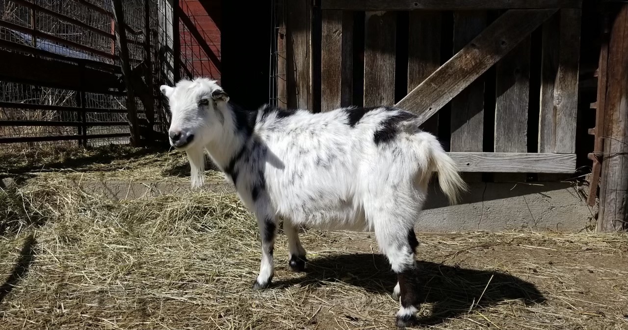 Doe Name: AGS 4A Farms Blossom Dam: AGS RJR Miniature Oreo Sire: AGS John’s Critters Rocco Birthdate: 5/22/2013 disbudded, white with black flecks