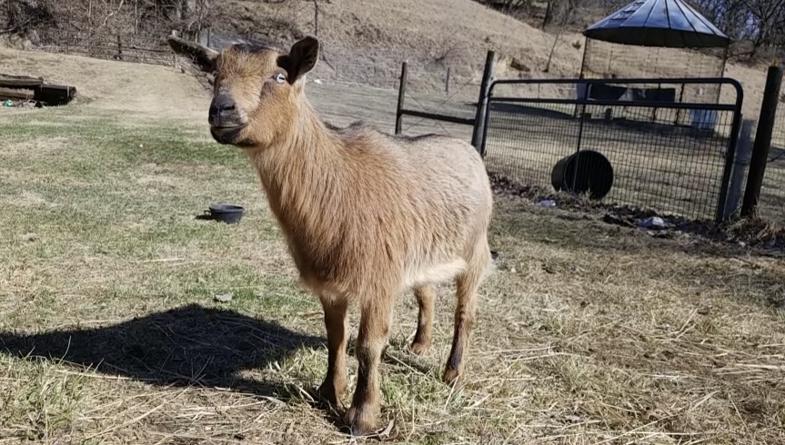 DoeName: Farm Wildwood PiperDam: Whispering Tales TrixieSire: Farm Swiftwind MagnumBirthdate: 3/10/2019Polled, Gold with random white